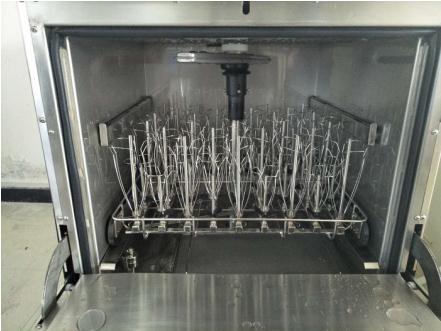 對于大多數洗瓶機都是主要依靠噴淋來沖刷玻璃器皿表面的污物,合理的選擇科學的沖刷方式將事半功倍。而旋轉噴淋也是不可缺少的,杜伯特實驗室洗瓶機采用360度旋轉噴淋,搭配多種不同的清洗籃架,可對玻璃器皿內外表面進行無死角的清洗,保證器皿清洗潔凈度。