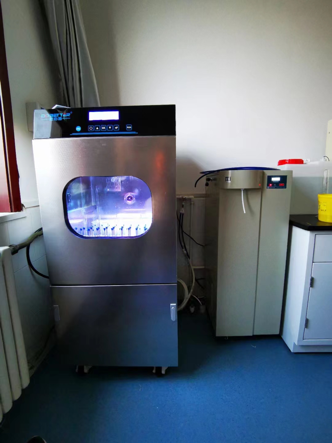 安裝完畢后,技術人員讓我開機試洗。我將待洗的瓶皿放入籃架,關上倉門,穩穩按下通電按鈕。剎那間,噴淋系統仿若被激活的猛獸,瞬間啟動。強勁有力且均勻細密的水流,恰似噴泉般洶涌噴薄而出,在洗瓶機內部縱橫交錯,迅速交織成一張密不透風的水網。這張水網所到之處,洗瓶機內部的每一處縫隙、每一個角落,污垢雜質皆無處遁形,被沖刷得干干凈凈,看到這一幕,我不禁露出滿意笑容。我清楚,這臺洗瓶機將改變繁瑣的清洗模式,大幅提升科研效率。